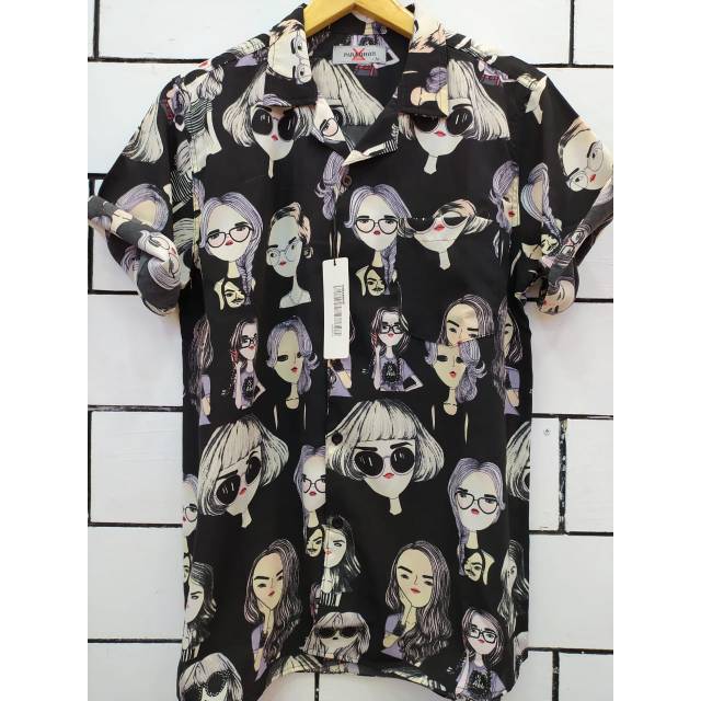 Jafa19 Kemeja Pria Printing Kartun Black Kemeja Pria Slimfit