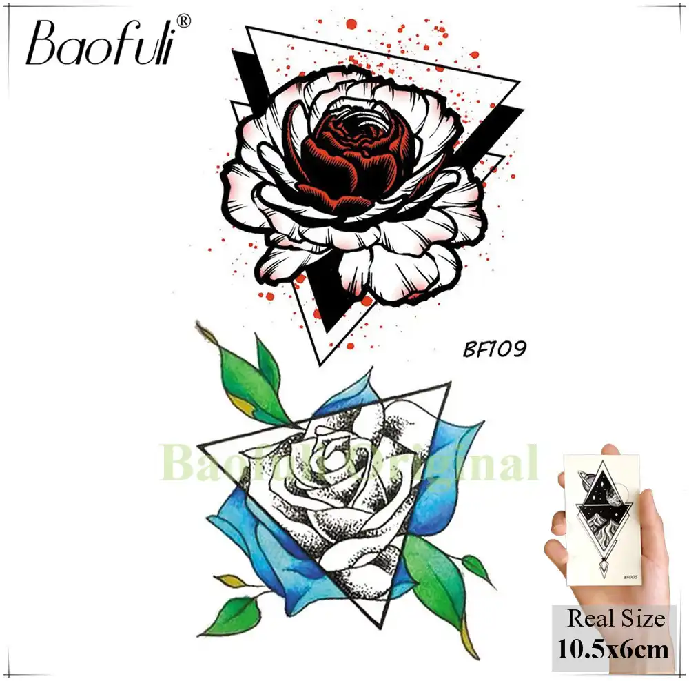 Baofuli Sketch Triangle Rose Watercolor Geometric Whale Temporary