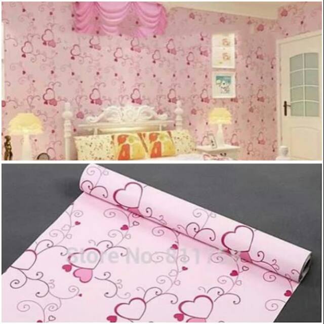 Wallpaper Dinding Murah Motif Love Pink Gatis Gelombang Lucu Manis