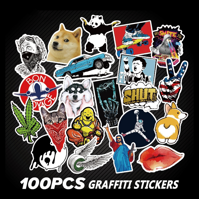 100pcs Set Sticker Graffiti Kartun Keren Untuk Laptop Koper