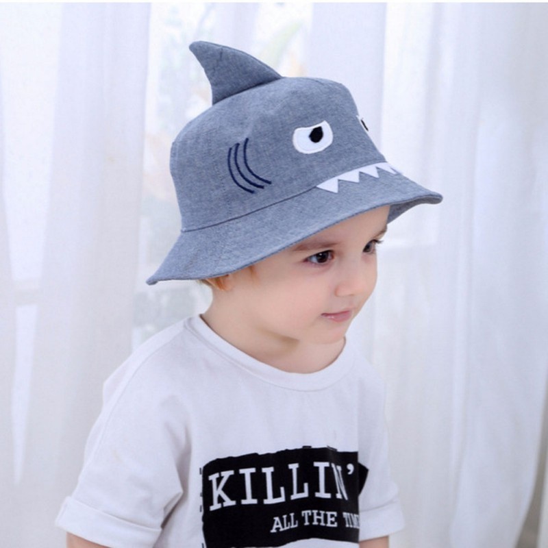 Topi Model Bucket Dengan Bahan Katun Dan Gambar Kartun Ikan Hiu
