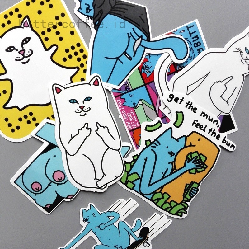Stiker Kucing Mengacungkan Jari Tengah Untuk Tas Koper Buku