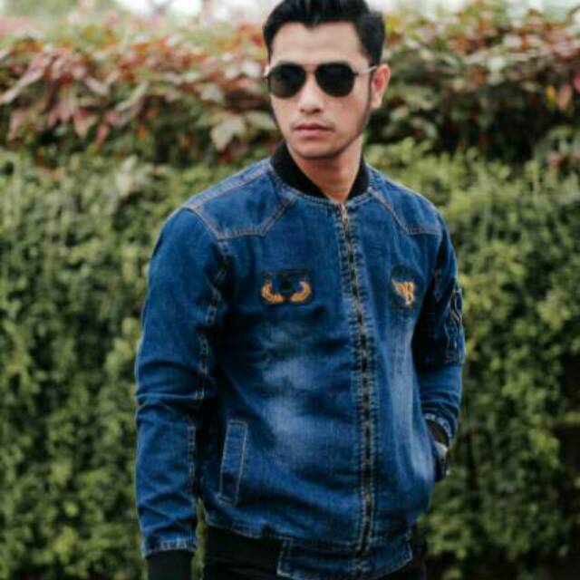Jaket Jeans Cowok Keren Model Bomber Kekinian Bahan Jeans Denim