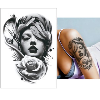 Wajah Wanita Dan Bunga Mawar Keren Temporary Tattoo Tato Temporer