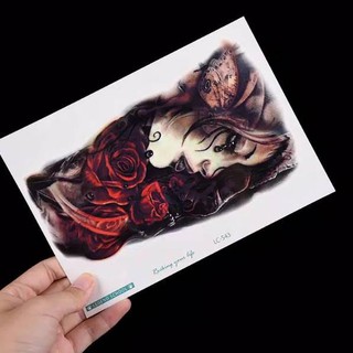 Lc 818 Fake Cool Girl Face Big Tattoo Waterproof Printing